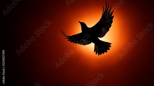 Silhouette of Bird in Flight: A dramatic silhouette of a bird in flight, wings outstretched against a fiery sunset, evoking a sense of freedom and wonder.