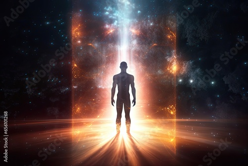 Silhouette of human astral body concept image for near death experience, spirituality, and meditation - AI Generated
