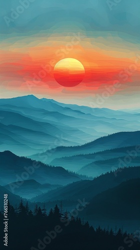 Silhouette of minimalist hills against a sunrise sky.