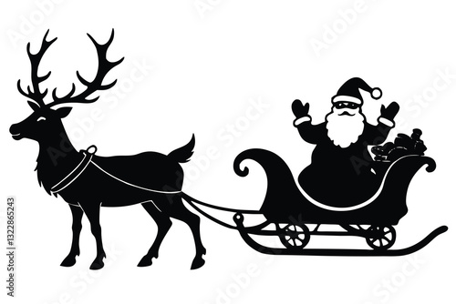 Silhouette of Santa Claus sleigh with a group of reindeer Isolated on white background