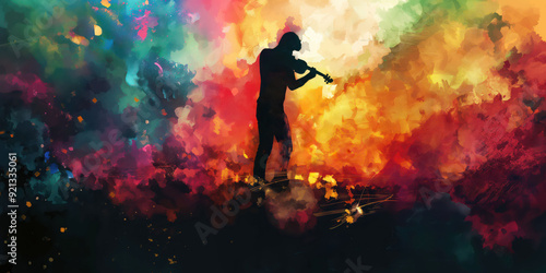 Silhouette of Violinist Against Colorful Abstract Background in Artistic Digital Painting