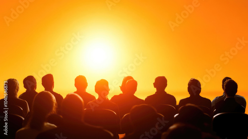 Silhouetted audience watching vibrant sunset event horizon scene