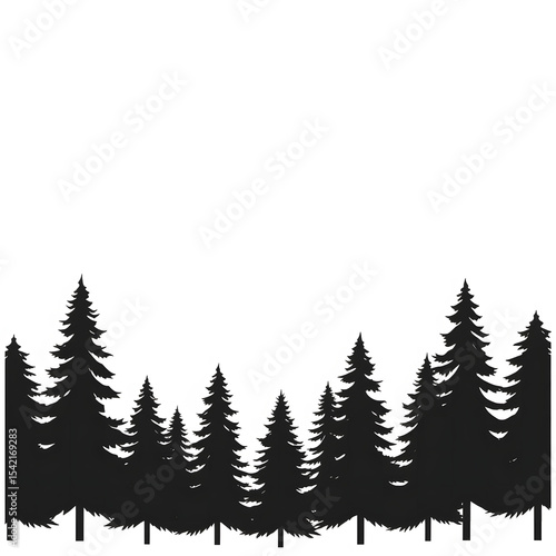 Silhouetted black forest trees against white background for nature and outdoor themed design