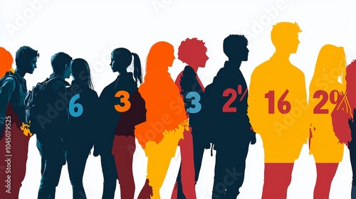 Silhouetted diverse group of people standing side by side with colorful overlays.