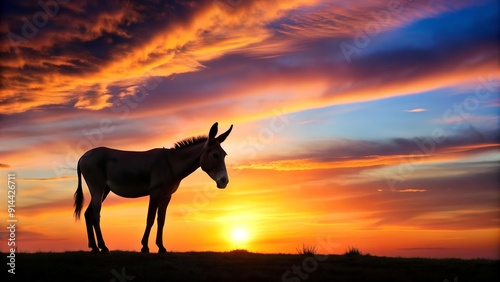 Silhouetted Donkey Against a Setting Sun AI generated