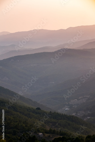 Silhouettes of mountains at sunset