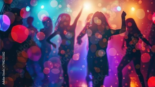 Silhouettes of people dancing in a club blurred background created with Generative AI