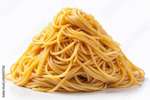 Silky spaghetti, ready to be tossed, dances against a stark white background.