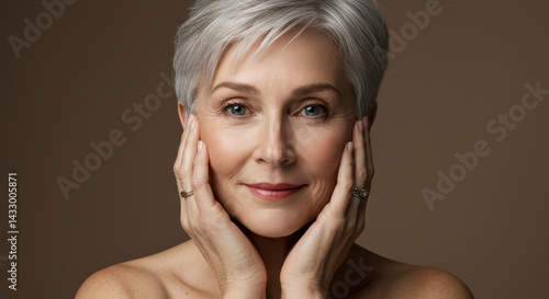 Silver Hair Beauty: Elegant Mature Woman with Glowing Skin & Timeless Grace. Anti-Aging Skincare, Confidence, and Natural Beauty Portrait