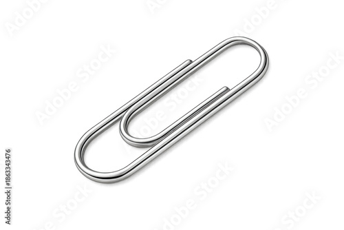 Silver metal paperclip creating connection and organization, essential office stationery item isolating on transparent background