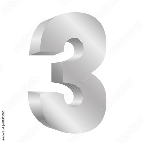silver number three icon, vector illustraction design image