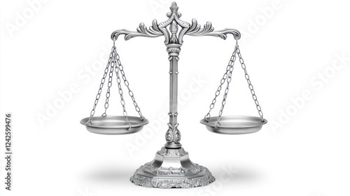 Silver scales of justice, balanced, white background, legal concept