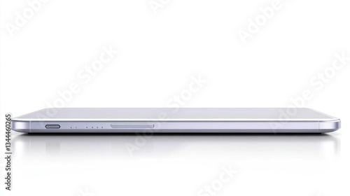 Silver tablet side view, sleek design
