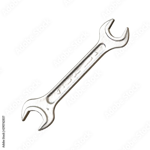 Silver two way metal wrench isolated on white background. 3D rendering of excellent quality in high resolution