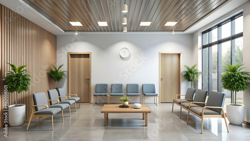 Simple and minimalist medical clinic waiting room interior, clinic, medical, healthcare, interior design