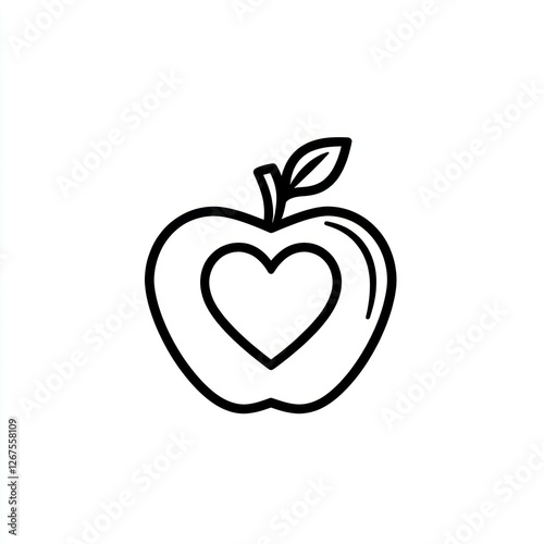 Simple apple with heart graphic, healthy food icon, abstract illustration