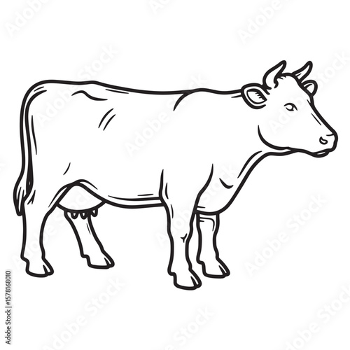 Simple black and white cow illustration showing detailed outline of a domesticated animal