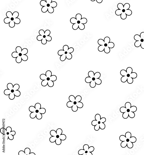 Simple Black and White Daisy Flower Pattern Seamless Background