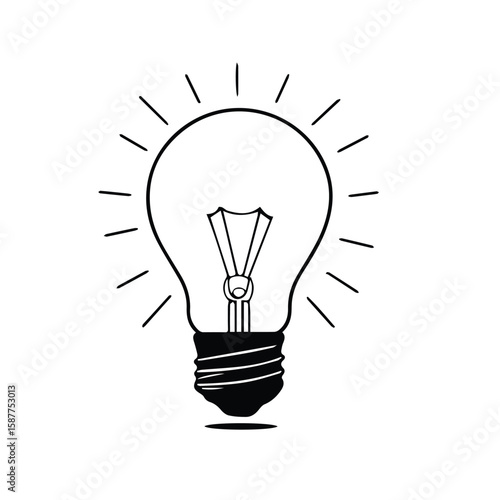 Simple black and white illustration of a lightbulb with radiating lines, highlighting a concept of inspiration or innovation.