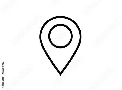 Simple black and white location pin icon representing a place marker for navigation and mapping.