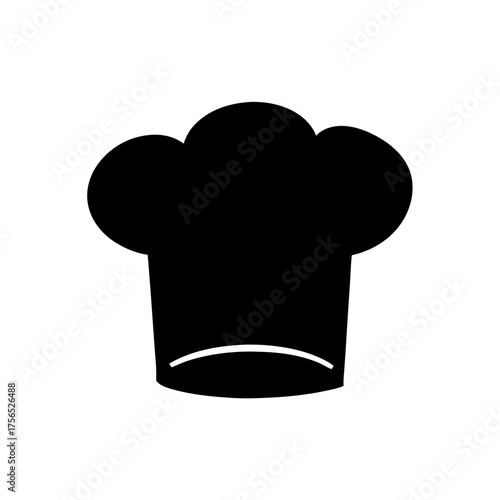 Simple Black Chef's Hat Illustration Isolated on White Background, Kitchen Symbol