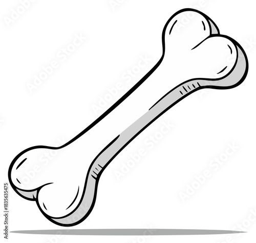 Simple Cartoon Bone Illustration Featuring Line Art and Shading on White