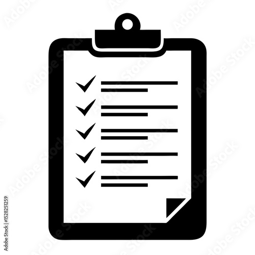 Simple clipboard checklist icon. Black and white clipboard with check marks and lines for to do list. Clipboard image perfect for apps and websites.