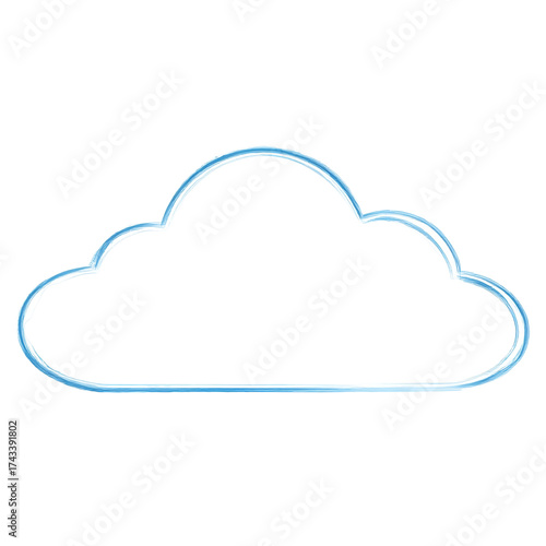 Simple cloud illustration isolated on transparent background, featuring a soft blue outline, ideal for representing weather, data storage, or cloud computing in a clean and modern style