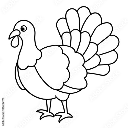 simple icon Children coloring book page, line art, monochrome black and white, cartoon outline cute style, illustration of a turkey