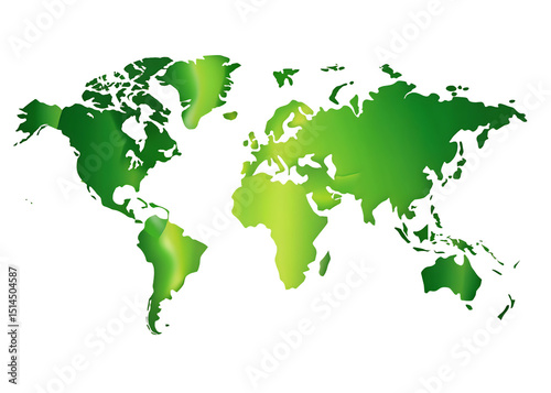 Simple illustration of a world map in a shade of green isolated on white background , PNG