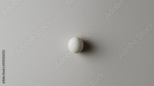 Simple Isolated White Egg on Plain Light Grey Surface Seen From Above