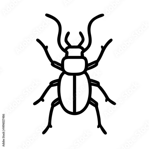 Simple line drawing of a beetle with long antennae and six legs on a white background surface view