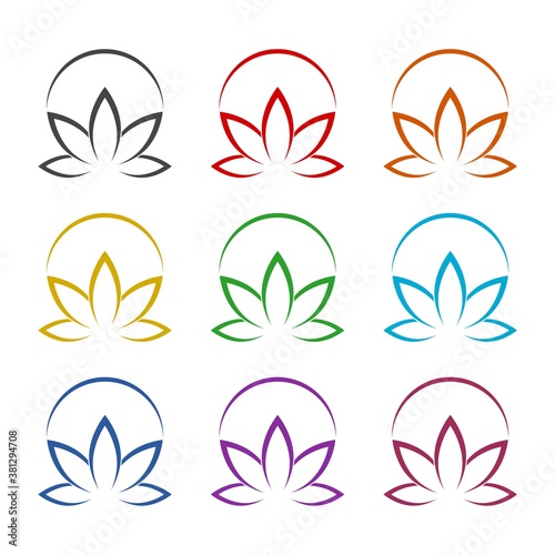Simple Lotus circle icon, color set