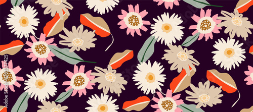 Simple minimalistic summer tropical floral seamless pattern