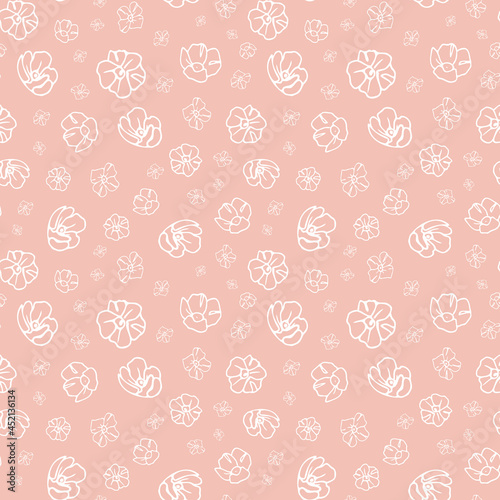 Simple pink flower pattern texture background. Cute floral print with spring flowers.