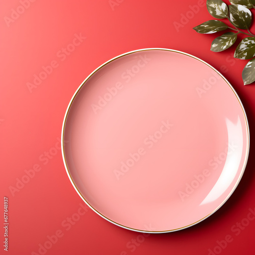 Simple plate on a colored background, Generative AI