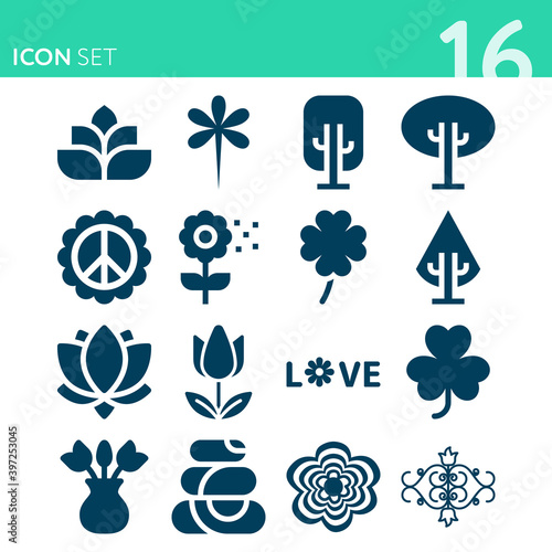 Simple set of 16 icons related to ing plant