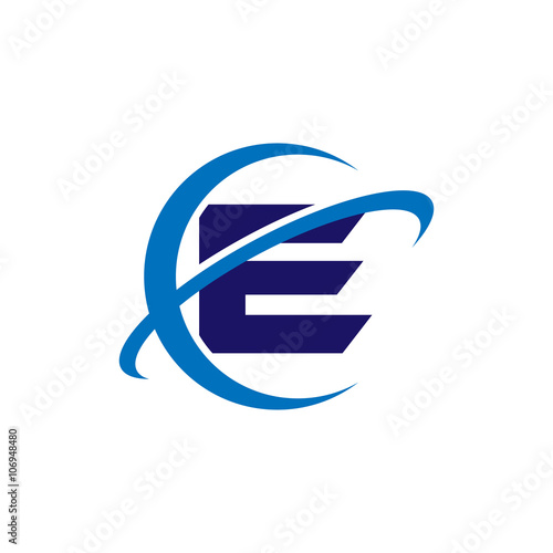 Simple Single Initial Globe Tech Logo Blue e