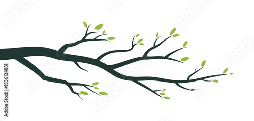 Simple Spring Branch with New Green Leaves Illustration