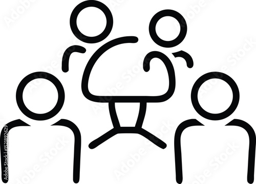 Simple thin line drawing depicting an informal team meeting with transparency