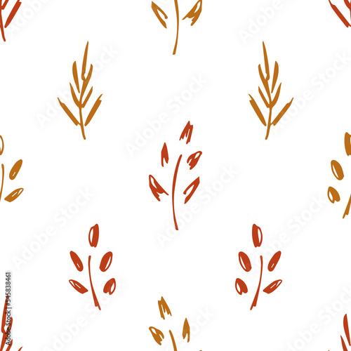 Simple vector geometric floral seamless pattern. Brown-orange dry autumn foliage on a white background. For fabric prints, textile products.