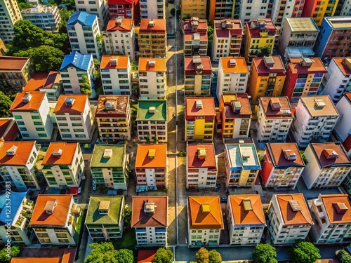 Singapore Cityscape: Dense Housing, Air Conditioner Walls - Aerial View