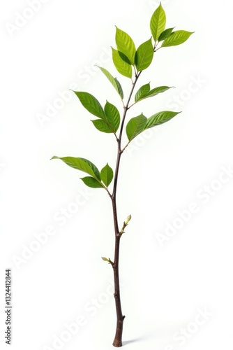 Single birch branch against a stark white backdrop, natural, isolated, woodsy