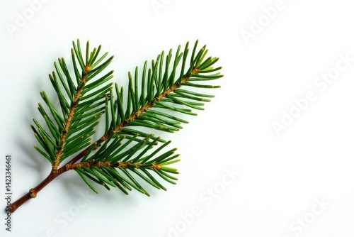 Single branch of fir tree isolated on white background, isolation, snowflakes, branches