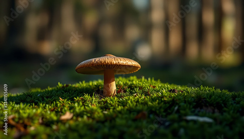 Single Brown Mushroom on Moss