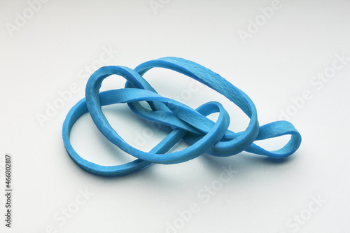 Single curled rubber band on white background