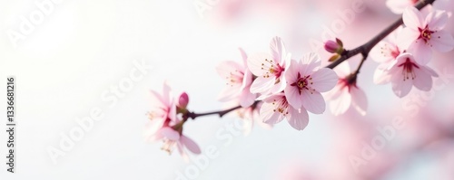 Single delicate cherry blossom branch on white, branch, springtime