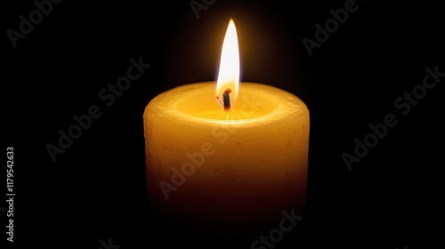 Single Lit Candle Flame Dark Background Yellow Wax Hope Remembrance