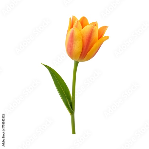 Single orange tulip on a white background