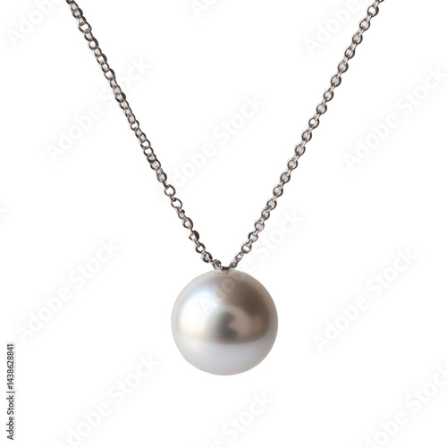 Single Pearl Necklace Falling Midair Crisp isolated on a transparent background